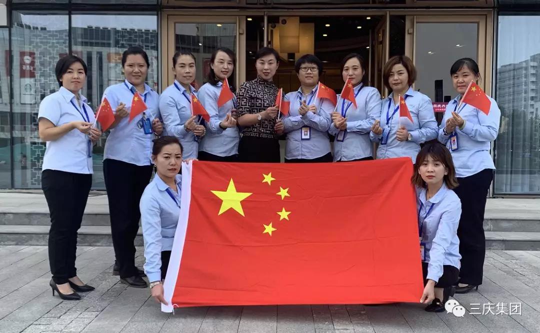 三庆集团在国庆节到来之际,用实际行动,为国庆生,一面面红旗,是三庆人的爱国赤诚之心,一张张笑脸,展现三庆人对祖国强大的自豪之情